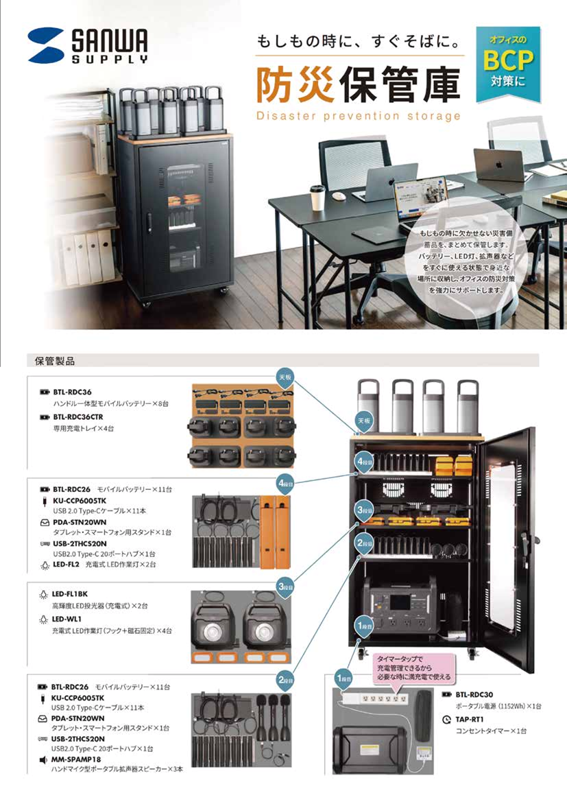 サンワサプライ製、オフィスのBCP対策を強化する「防災保管庫」のご提案です。