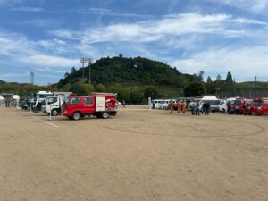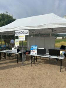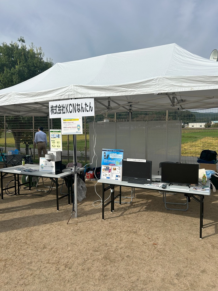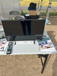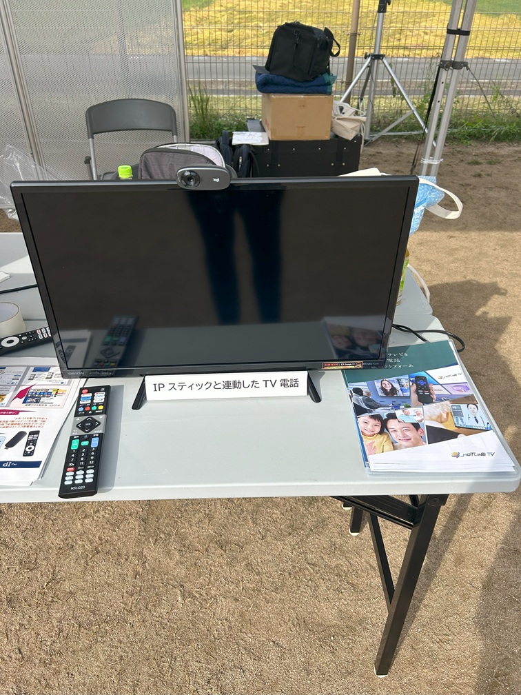 令和7年9月28日、園部スポーツ広場にて開催された南丹市政20周年記念・令和7年度南丹市総合防災訓練において、KCNなんたん様のブースでIPスティックコンテンツとしてテレビ電話アプリ「HOTLINE TV+」を展示しました。本訓練は、南丹市内での直下型地震発生を想定し、地区ごとの住民避難訓練と地震災害現地対応訓練の2部構成で実施されました。当日は、自治体関係者様をはじめ多くの一般参加者の方々にお越しいただき、テレビ電話やテレビ通知のデモンストレーションを実際に体験いただきました。